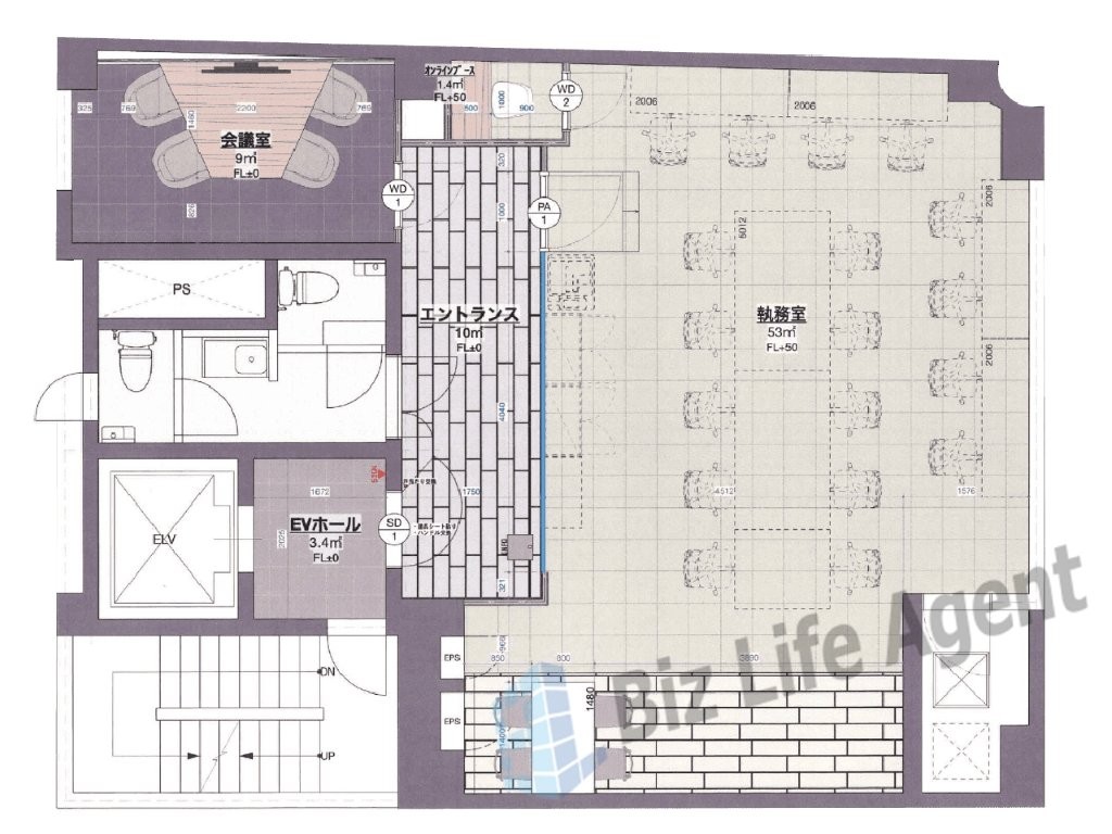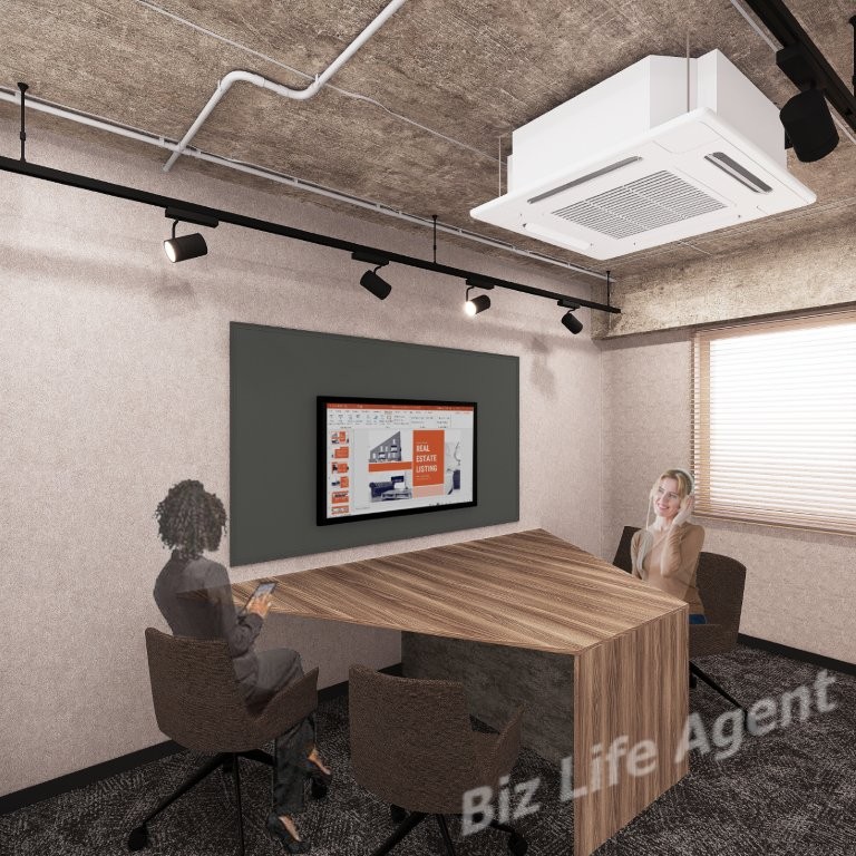 4階にハーフセットアップオフィスがあり、4名用会議室や個室ブースを備え、短期間・低コストで移転が可能です。