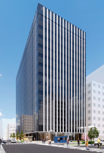 天に伸びるデザインで地域の発展と企業の成長を表現しています。