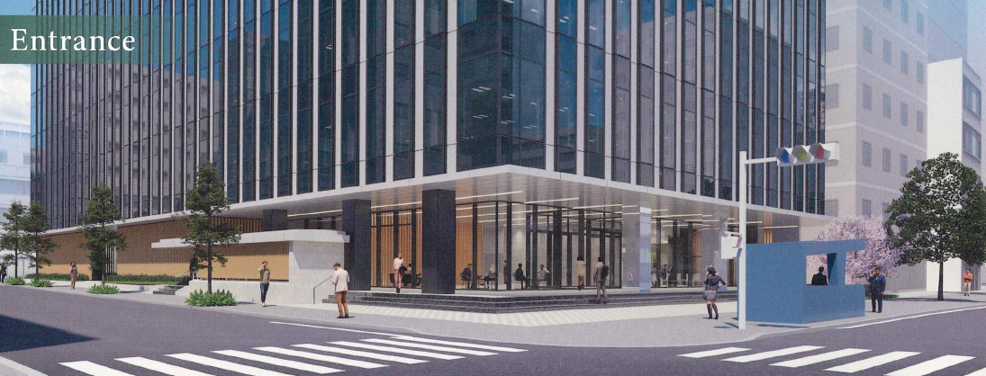 天に伸びるデザインで地域の発展と企業の成長を表現しています。