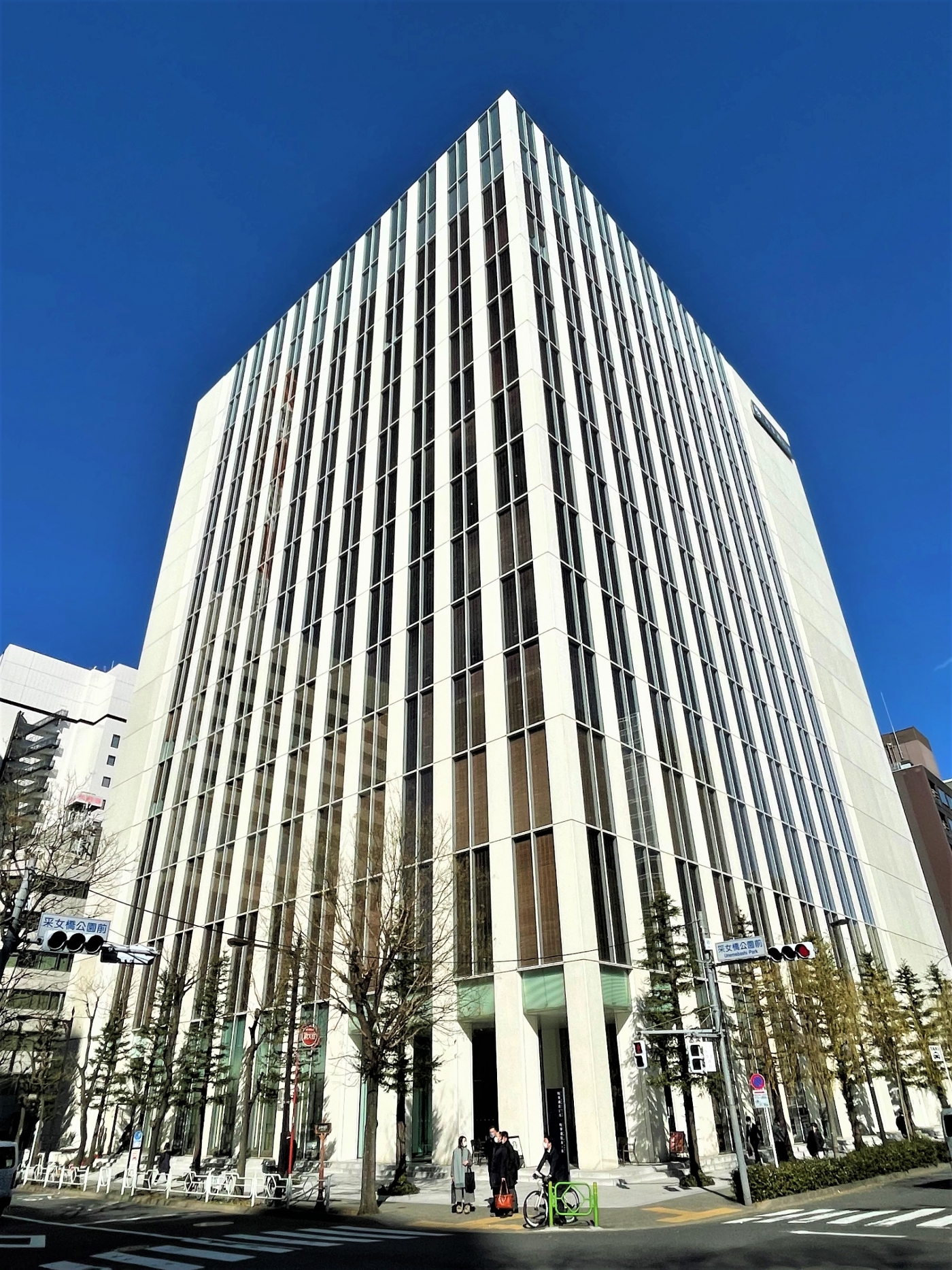 白を基調とした壁面とガラス張りの外観が印象的な時事通信ビルは、