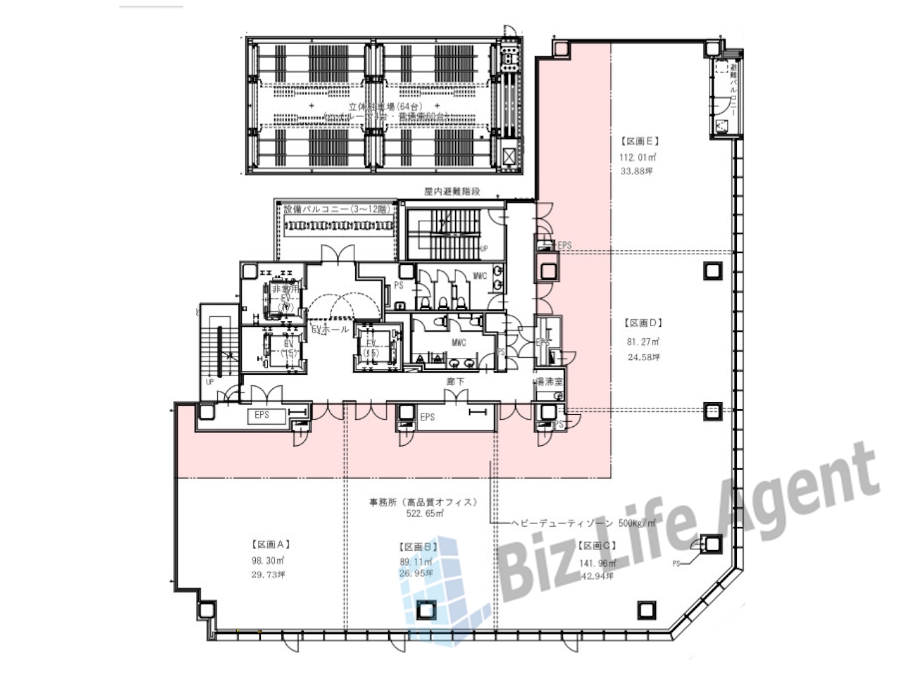 基準階は約158坪、最大5分割が可能なフレキシブルオフィスです。