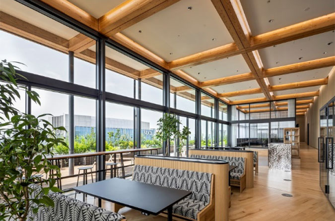 最上階には見晴らし抜群の屋上テラスがあり、リフレッシュコーナーや貸会議室、